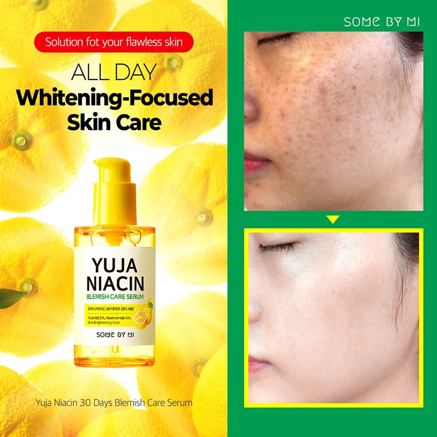 SOME BY MI - Yuja Niacin Blemish Care Serum 15 de agosto de 2020. Some By Mi Yuja Niacin Skin Care Products. This Yuja Niacin Blemish Care Serum is infused with 823 of moisture packed Yuja extract and Niacinamide that takes care of blemishes and dark spots and heaps of vitamins to give life to dull tired skin.